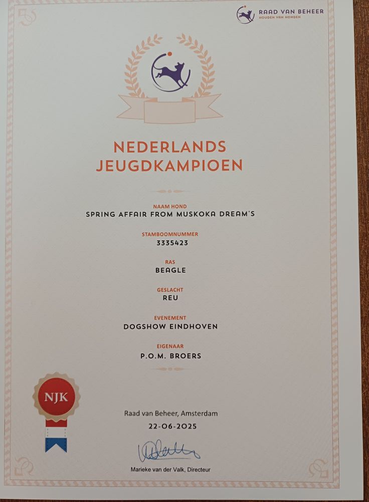 5-4-25 Wat weer een prachtige show dag met Bart. We waren afgereisd naar Luxemburg voor de show aldaar. Bart deed het geweldig. Beste Junior, En nu Luxemburgs jeugdkampioen, tevens nu Internationaal jeugd kampioen en als kers op de taart gekwalificeerd voor Crufts 2026.